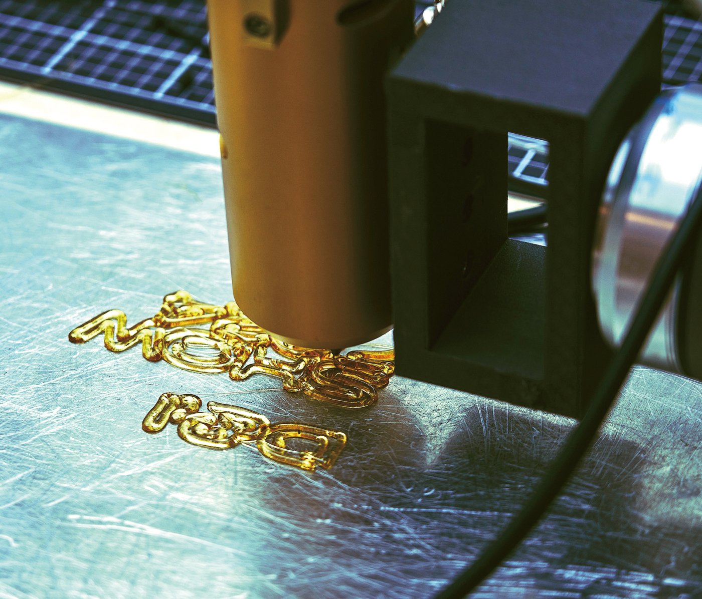 做品最具冲破性的立异正在于以AI法式节制的机械臂,改革了中国非遗“糖画”的创做体例。通过精准节制喷嘴温度取气流速度,机械臂将特制糖浆“打印”呈现代字体,使固态糖履历液态塑形、半液态成型至最终凝固为“D&I GRAD SHOW 2024”字样。糖从固态被融化、被机械臂拉伸塑制、恰如每一位结业生正在数年的进修中被学问沉塑、历经考验终获“成型”的生命轨迹。这种将物质、手艺改革取生命成长巧妙勾连的深层现喻,使得做品超越了视觉,触动了不雅众普遍的感情共识。