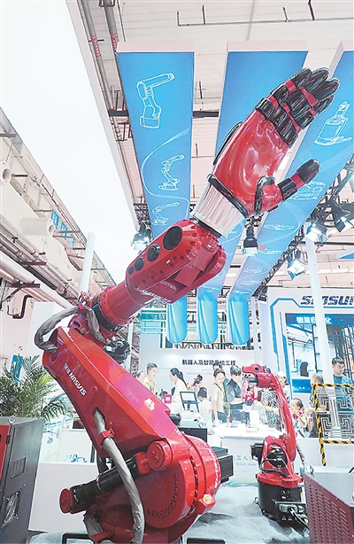 日前,正在东安汽车动力股份无限公司出产车间,工业机械人正在出产功课。记者 王 松摄?。